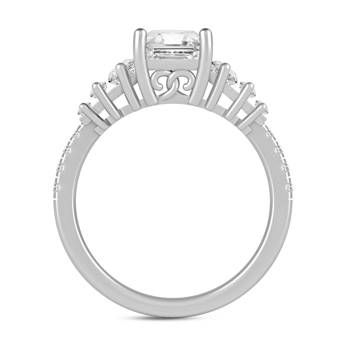 - Center Diamond: 2.00 carats, Emerald Cut, G-H Color, VS Quality
