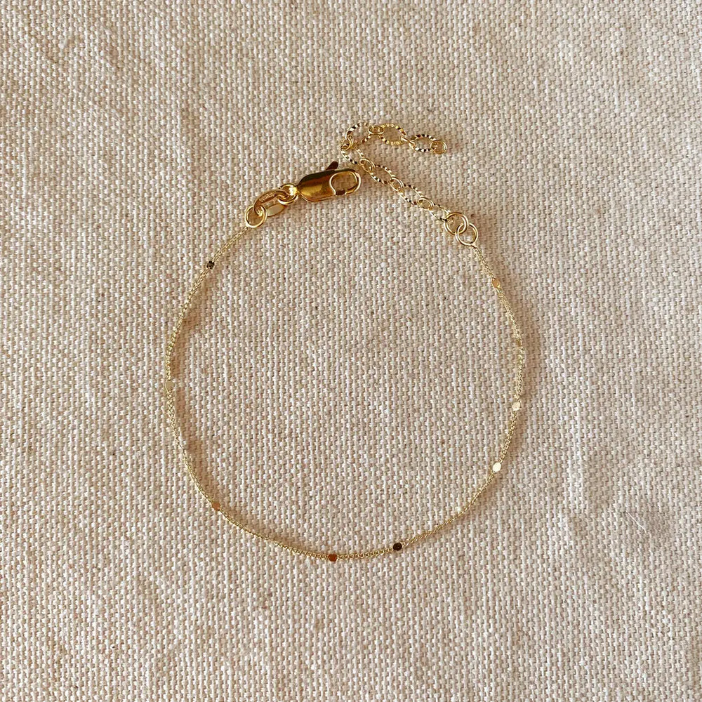 18k Gold Filled 1mm Curb Bracelet With Pressed Details
