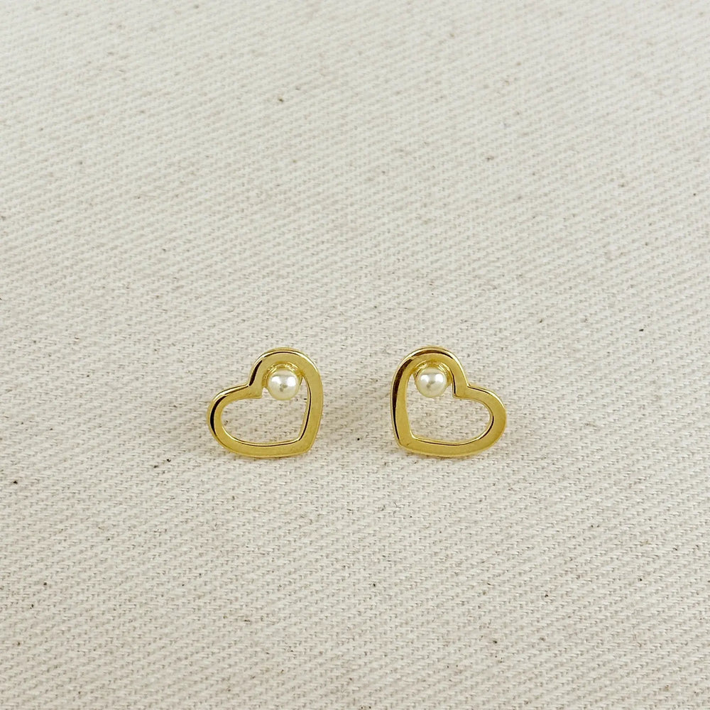 18k Gold Filled Pearl Heart Earrings