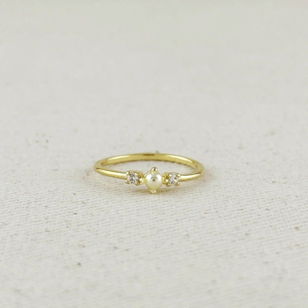 18k Gold Filled Pearl & Crystal Ring